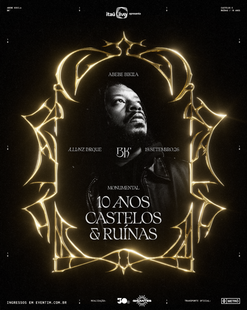 Havia algo diferente no ar quando Abebe Bikila Costa Santos lançou Castelos & Ruínas em março de 2016. Não era apenas mais um disco de rap. Era um manifesto estético, uma declaração de que o hip-hop brasileiro podia andar com as próprias pernas sem pedir licença para a indústria. Uma década depois, BK’ prova que esse movimento era maior do que qualquer um poderia imaginar: no dia 19 de setembro de 2026, ele se tornará o primeiro rapper brasileiro a realizar um show solo no Allianz Parque, em São Paulo, um dos principais palcos da indústria do entretenimento da América Latina.